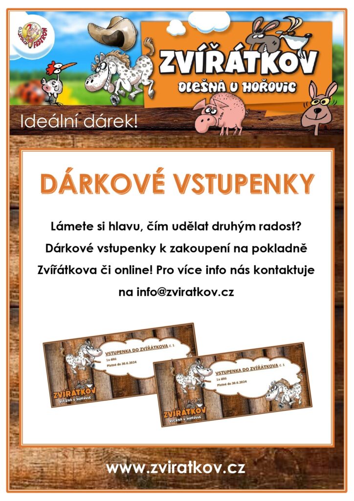 - online – v tomto případě nás kontaktujte na info@zviratkov.cz, kde spolu vyřešíme podrobnosti platby a vstupenku vám zašleme e-mailem